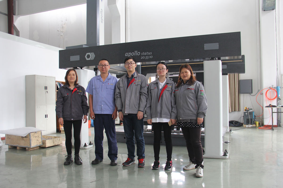 公司拥有1.2×2米的大理石检验平台、测高仪、万向测齿仪、洛氏硬度计、海克斯康Apoollo Status 20.33.10三坐标测量仪等先进精准的检测仪器, 其中三坐标检测仪的工件检测范围:长3500 mm×宽2000mm×高1000mm,精度范围:6+7L/1000μ。